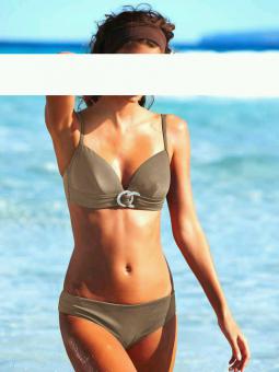 Beschreibung: Extrevagant in Szene gesetzter Bikini mit charmantem Design-Statement. Raffiniert designtes Oberteil mit eingearbeiteten Bügeln und Soft-Cups für ein aufregendes Dekolleté. Verstellbare Träger. Rückenverschluß. Hingucker:ist das modische, au