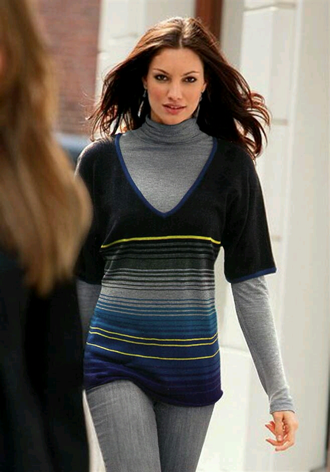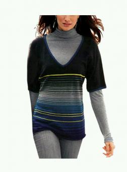 Beschreibung: Cosmopolitan-Style de luxe. Souverän inszenierter Pullover in lässiger, weiter Form und in hochmodischer Streifenoptik. Erstklassiger Feinstrick mit Rollsäumen. 1/2-lange Ärmel und großzügiges, spitzes Dekolleté. Figurumspielende Form.. Läng